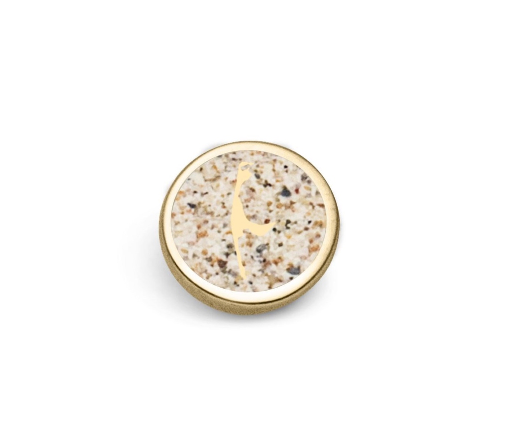Sandelement "Sylt" mit der Sylt Silhouette, eingebettet in Strandsand, gefaßt in vergoldetem 925er Sterlingsilber, zu kombinieren mit A 1586.MBR (5 mm)
